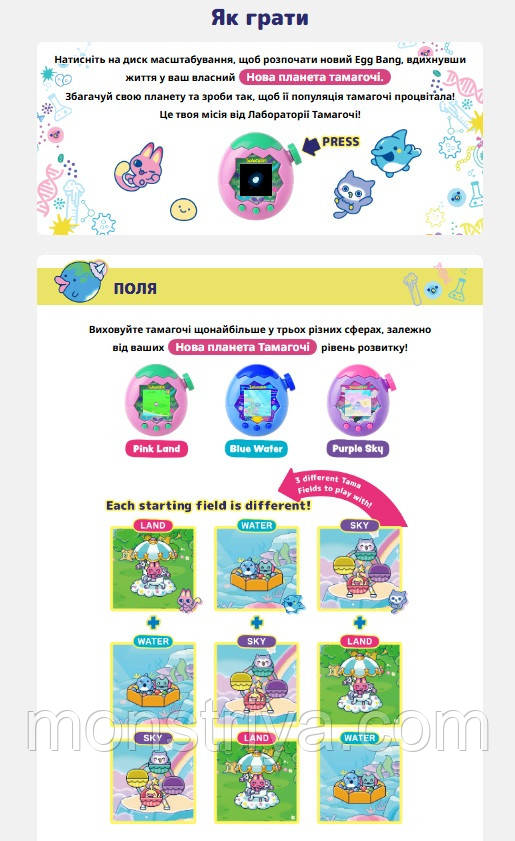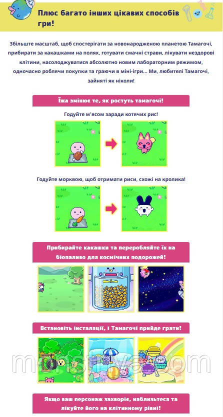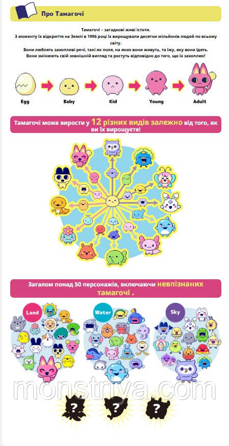 Понад 50 унікальних персонажів Тамагочі і 12 видів!