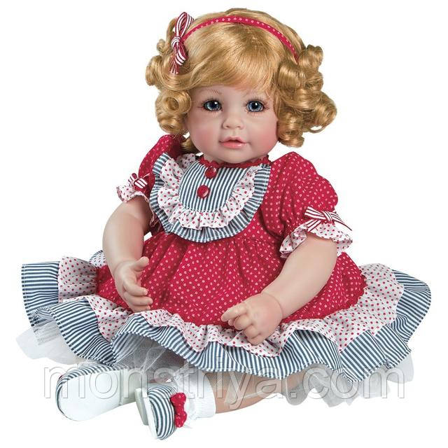 Голова лялечки, руки та ноги з м'якого та приємного на дотик вінілу з найтоншим запахом дитячої присипки. Туловище м'яко набивне з наповнювачем-обважнювачем, що надає вагу та рухливість ляльці. Окуляри, вії та брови розписані та кріпляться вручну Лічко розкладається вручну. Волосся перука з високоякісного канекалону, дуже м'яке та приємне на дотик. Лялька упакована в картонну коробочку.